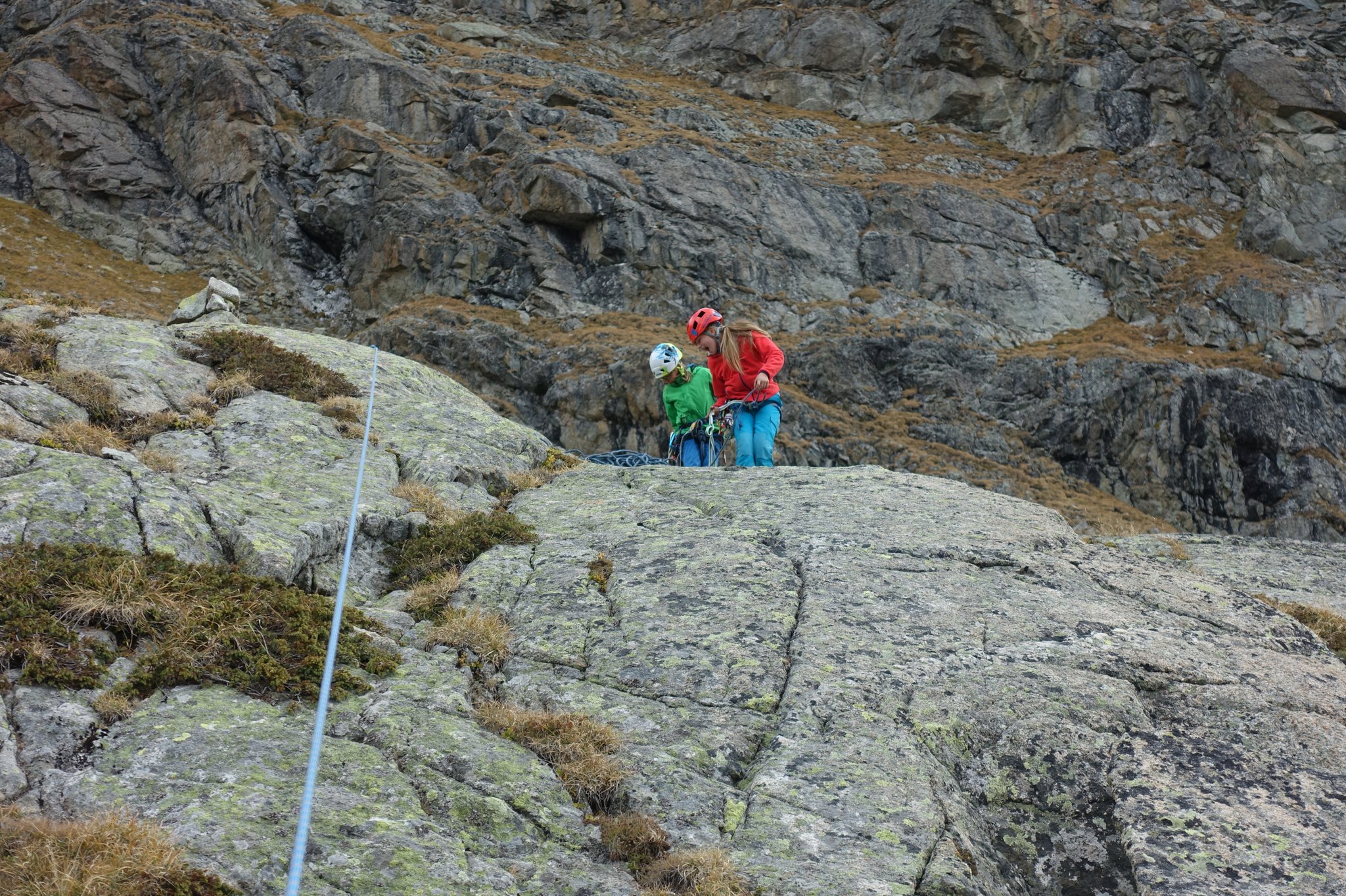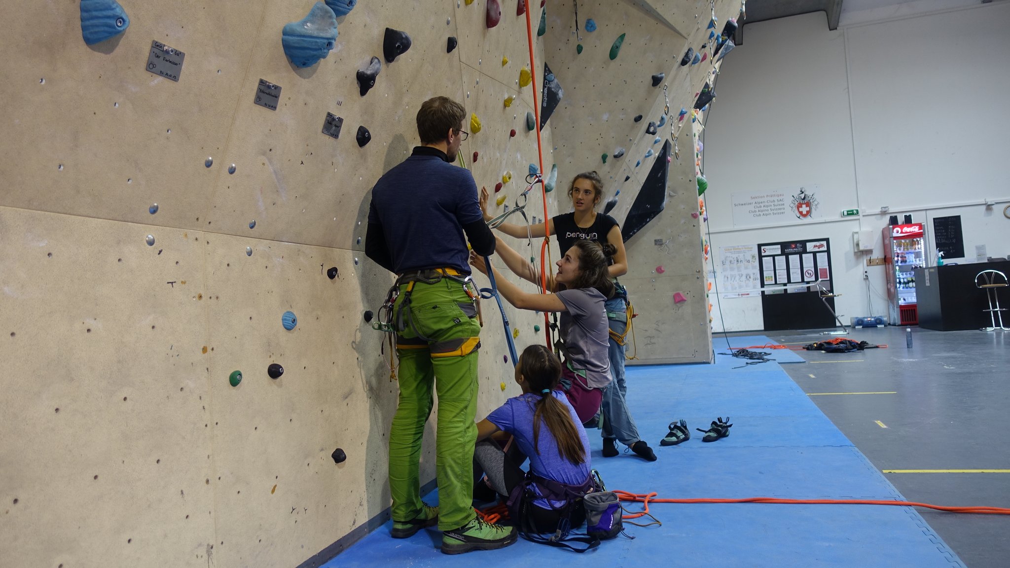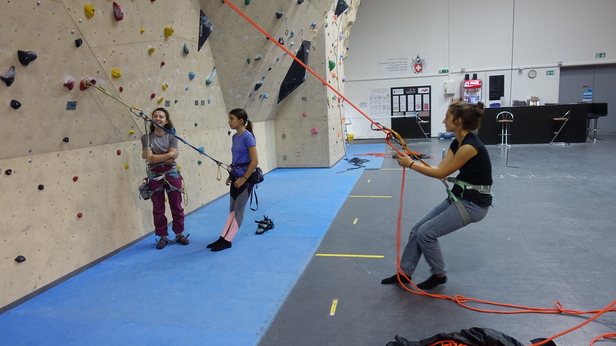 Am 1. Tag wurden die Teilnehmerinnen in die Mehrseillängentechnik eingeführt und sie führten erste Praxisübungen durch, leider Indoor (Kletterhalle Küblis). Nachdem die Köpfe gefüllt waren, war es an der Zeit auch die Bäuche mit neuer Energie zu versorgen. Dazu reisten wir nach Partnun, wo wir schon unsere zuvor geplante Reservierung (Alpenrösli) hatten. Am zweiten Tag wurde das gelernte dann in die Praxis am Fels (Klettergarten Haldenstein) umgesetzt.